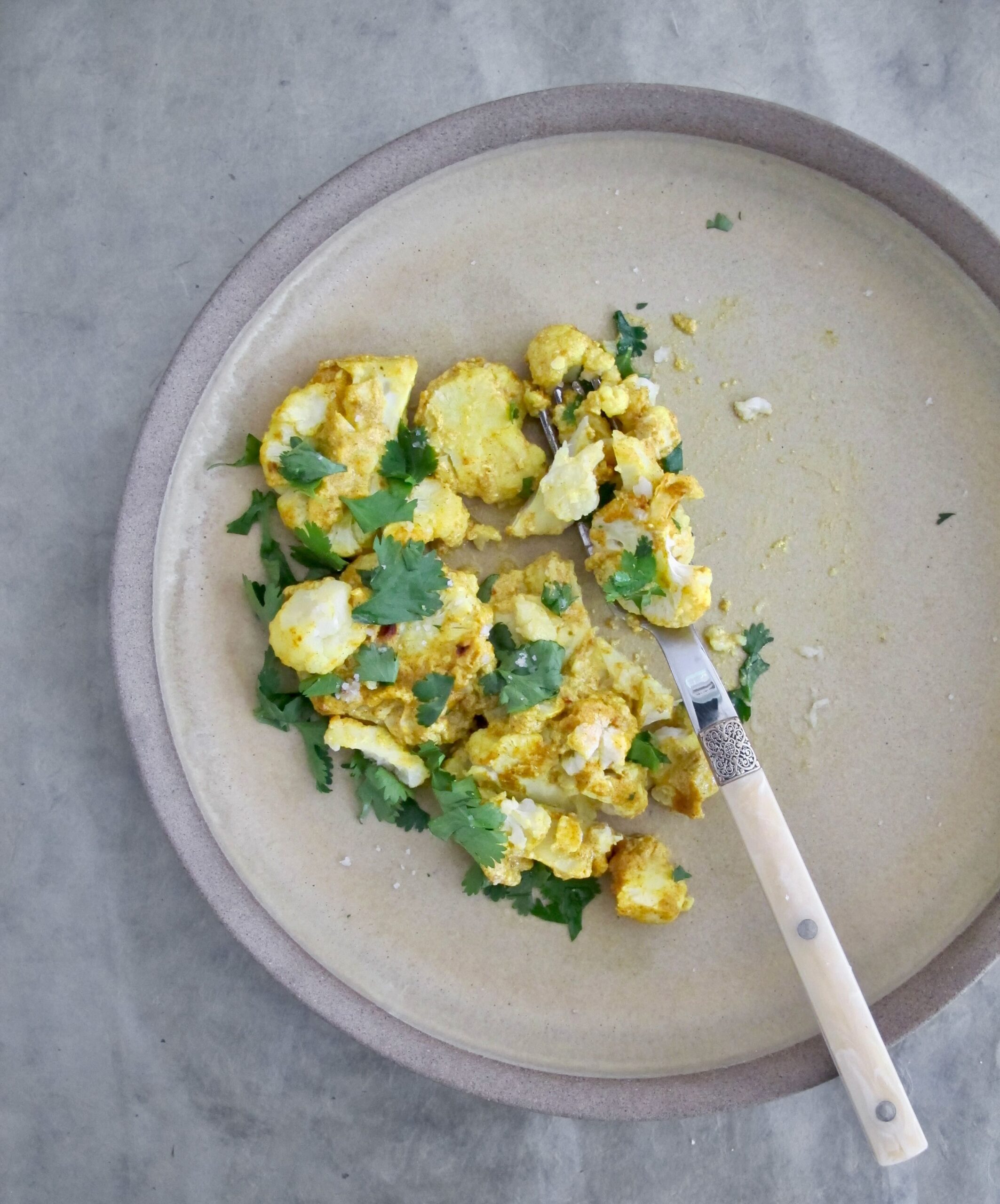 Deutscher Kohl: Dies ist der zehnte Blumenkohlsalat in zehn Jahren im Blog, ein guter Schnitt, finde ich. Im Frühjahr schmeckt Blumenkohl mit Linsen und Radicchio oder mit Bärlauch, im Sommer mit Tomaten und Kapern, im Winter mit Tahin-Zitronen-Dressing und das ganze Jahr über mit frischen Kräutern. Hier wird er in gewürztem Joghurt im Ofen gegart. Ich habe gemahlene Gewürze verwendet, besser für das Aroma ist es allerdings, Samen zu kaufen und nach Bedarf kleine Mengen im Mörser zu zerstoßen.