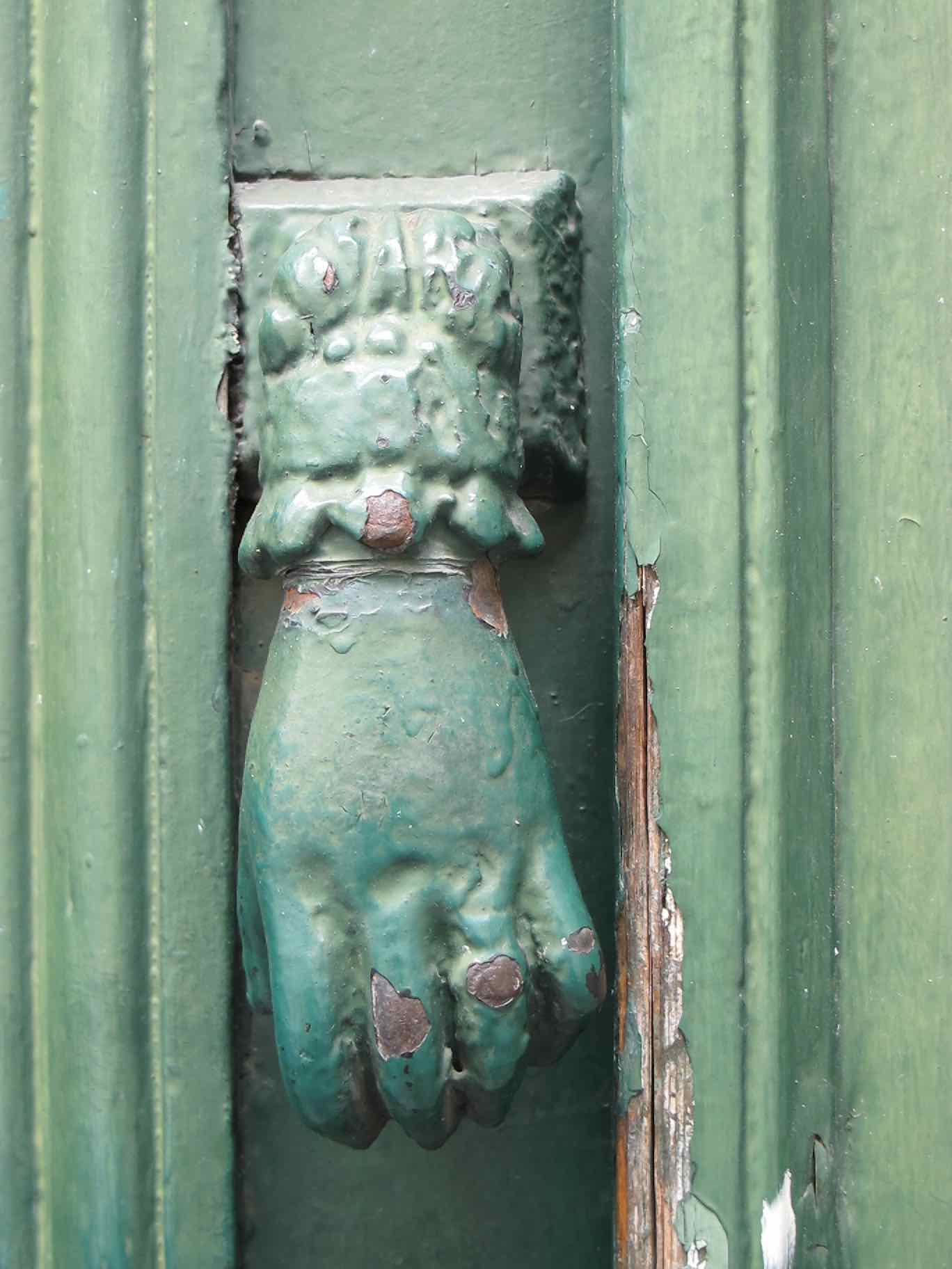 Einlass erwünscht: Wem sind sie im Frankreich-Urlaub noch nicht aufgefallen, die Türbeschläge in Form einer Hand? Ob im selben Farbton lackiert wie die massive Eingangstür, aus blank poliertem oder abgewetzten Metall, die typischen Türklopfer in französischen Altstädten sind dekorativ und funktional zugleich: Mit oder ohne Kugel, mit oder ohne Anschlagfläche erzeugt die Hand den Klopfton, mit dem der Gast Einlass begehrt.