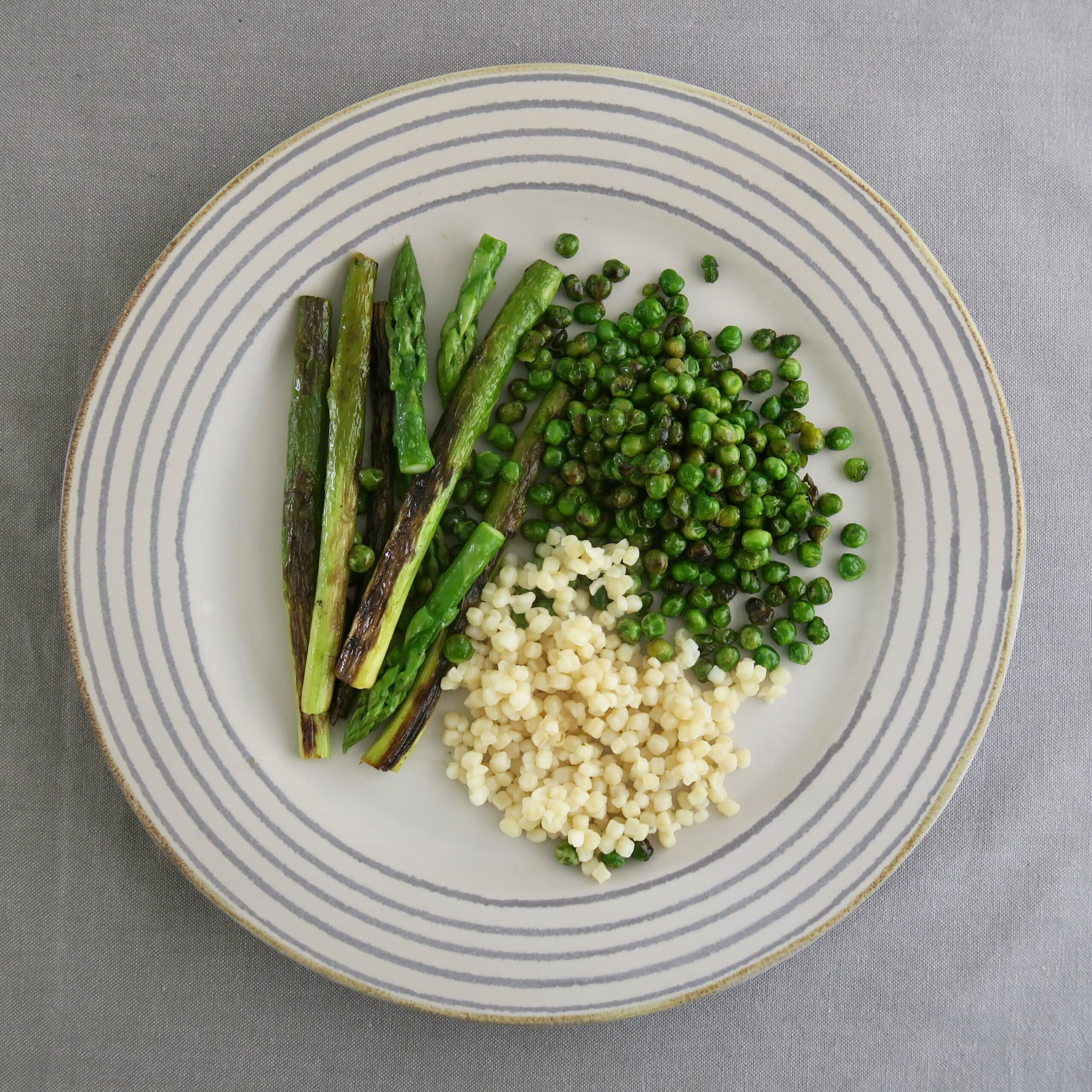 70 g Fregola sarda • 250 g grüner Spargel • 250 g Erbsen (TK)