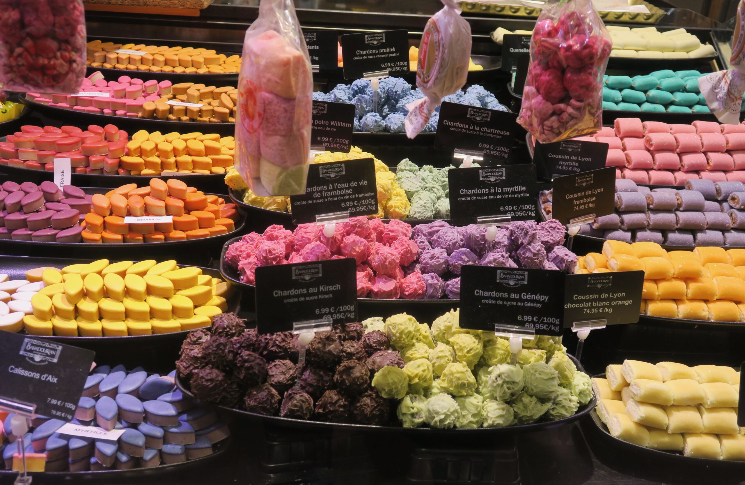 Eine Tour durchs Schlaraffenland: Für Foodies dürfte ein Einkaufsbummel in der städtischen Markthalle, die im Geschäftsviertel Part-Dieu liegt, ins Geld gehen. Hier darf es ruhig ein bisschen mehr sein! Denn knapp 60 Händler, Bäcker, Chocolatiers und Pâtissiers bieten französische Feinkost und Lyonnaiser Spezialitäten in exzellenter Qualität an. Die Käsehandlung La Mère Richard ist eine Legende, insbesondere die Weichkäse Saint-Marcellin und Saint-Félicien aus der nahen Dauphiné gelten hier als perfekt gereift. Ebenso sind die 1880 gegründete Charcuterie Cellerier und die Metzgerei Sibilia, die die berühmten Lyoner Würste herstellen, Institutionen. Die Schlachter und Geflügelhändler wie die Boucherie Trolliet versorgen die Kundschaft mit frischen Kaninchen, Pré-Salés-Lamm vom Mont Saint-Michel, Fleisch der berühmten französischen Rinderrassen und Bresse-Hühnern, die Fischhändler mit Meeresfrüchten und dem Tagesfang. Andere Stände sind auf Obst und Gemüse, spanische oder italienische Produkte, auf Trüffel, feine Pâtisserie oder Pralinen und Schokolade spezialisiert, Petrossian ist geradezu ein Synonym für Kaviar. Natürlich wurde auch eine Weinhandlung nicht vergessen. Und 1001 Gewürz und exotische Zutaten gibt es bei Bahadourian. Das Sortiment ist nicht auf den Orient beschränkt, neben Curry, Ras-el-Hanout und anderen Gewürze hat die 1929 eröffnete Epicerie Weinblätter zum Füllen, Öl und Essig, getrocknete Früchte und Nüsse, Rosen- und Orangenblütenwasser, chinesischen Reis und noch viel mehr vorrätig.
