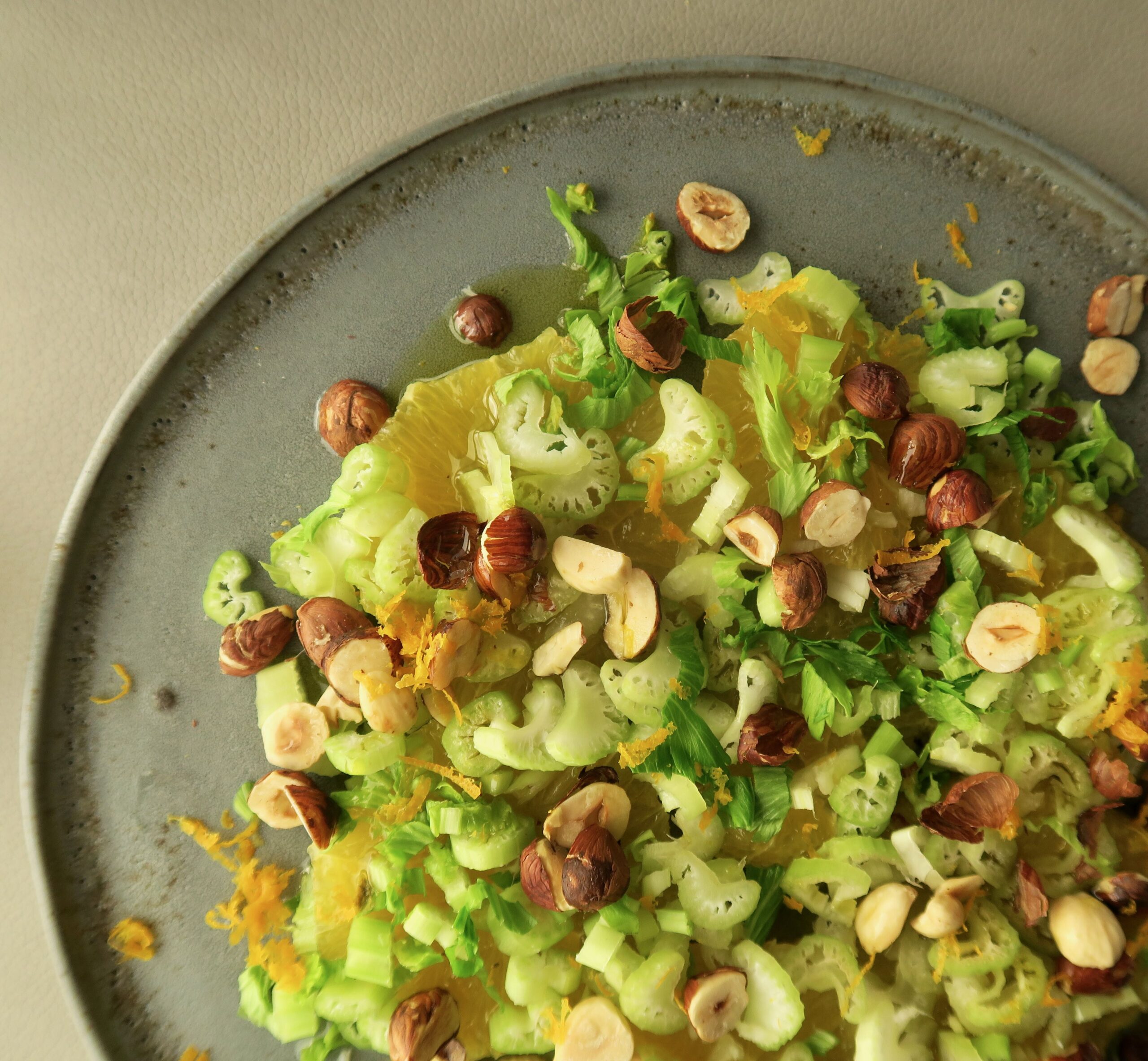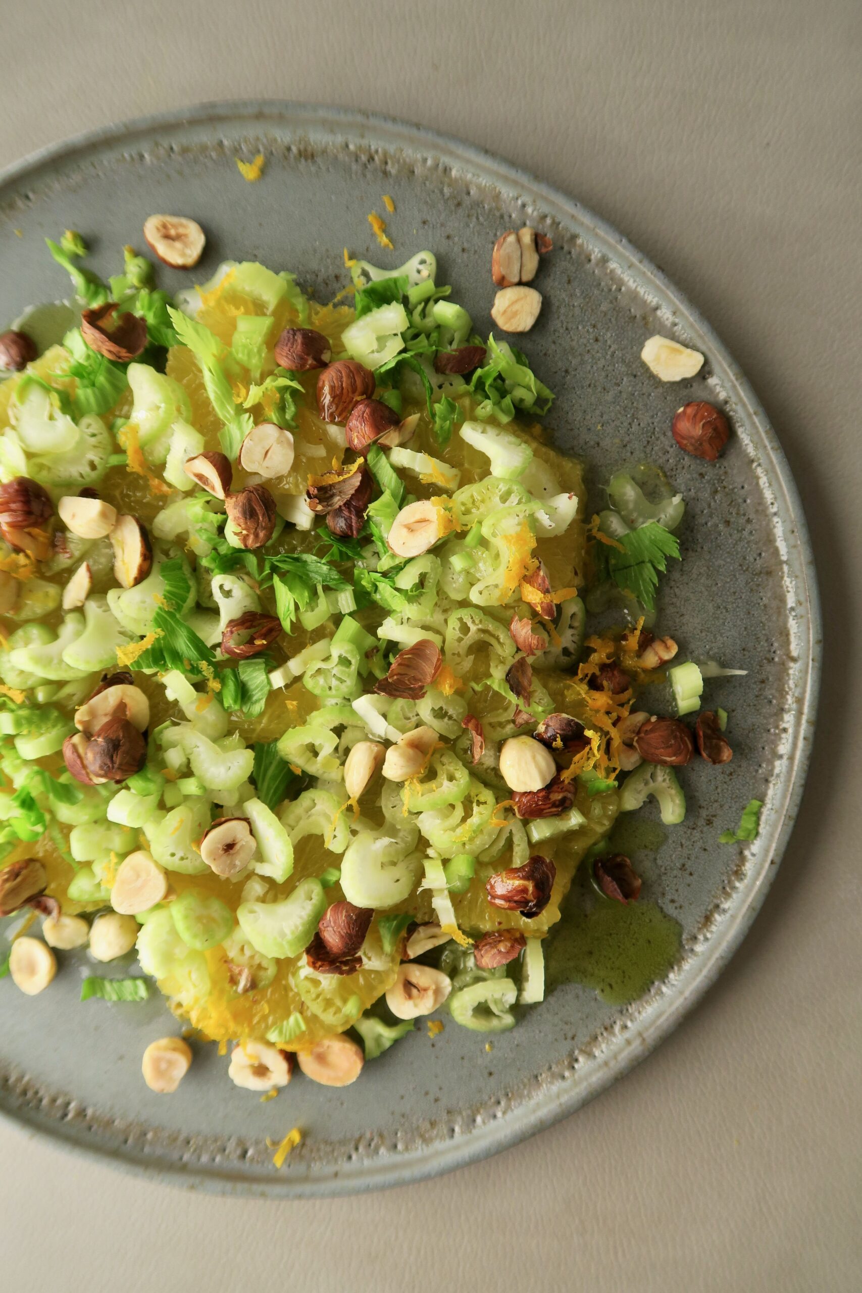2 unbehandelte Orangen • 3 EL Haselnusskerne • 2 Stangen Staudensellerie
