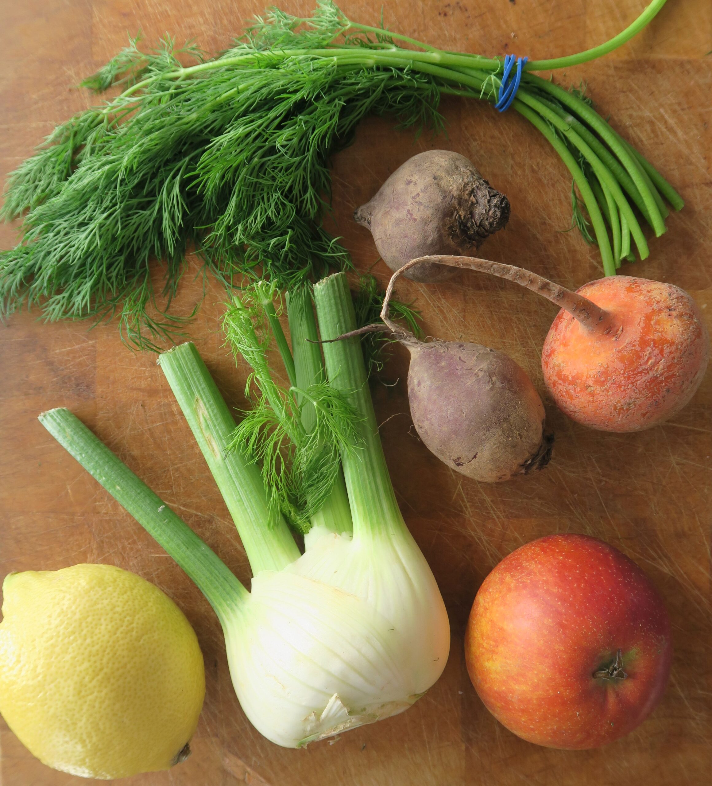 3 Gelbe und Rote Bete • 1 Knolle Fenchel • 1 Apfel (vorzugsweise Cox Orange)