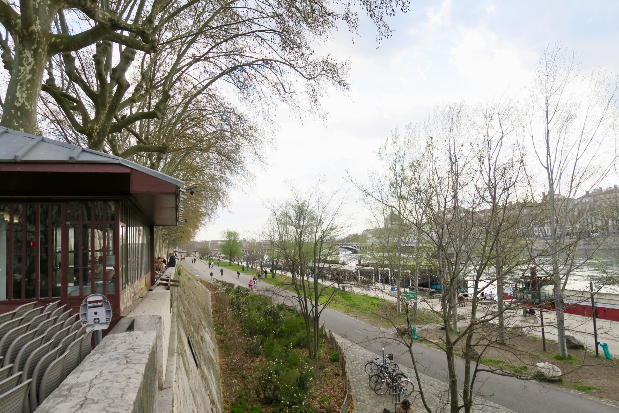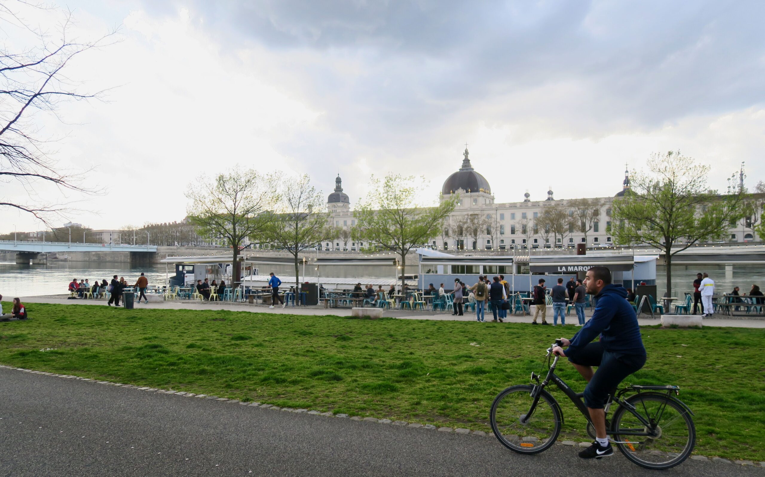 Freizeit am Fluss: Nicht nur Grün säumt den Fluss, überall bestehen Angebote, sich zu bewegen oder zu entspannen: Trimmpfad und Skatepark, Plätze zum Boule-, Fußball- oder Volleyballspielen, für Rollschuhfahrer, Spielplätze für Kinder, Picknickwiesen, Sonnenliegen und Wasserbecken ziehen die Lyoner Bevölkerung magisch an. Für solche Freizeitaktivitäten wurde das Rhône-Ufer übrigens von rund 2500 Parkplätzen befreit. Den Pont de la Guillotière flankieren auf beiden Seiten Treppen, die Terrasses de Guillotière, von deren Stufen man den fantastischen Blick auf das Wasser und die Halbinsel mit dem Hôtel-Dieu genießen kann – fast meditative Wirkung inbegriffen (einen ähnlich schönen Blick ermöglichen die Deutzer Treppenstufen am Rheinufer in Köln – auf die Altstadt, Museum Ludwig, Hohenzollernbrücke und den Dom). Nirgendwo schaltet man schneller auf die Betriebsgeschwindigkeit der Einheimischen und Lässigkeit als Lebenseinstellung herunter!