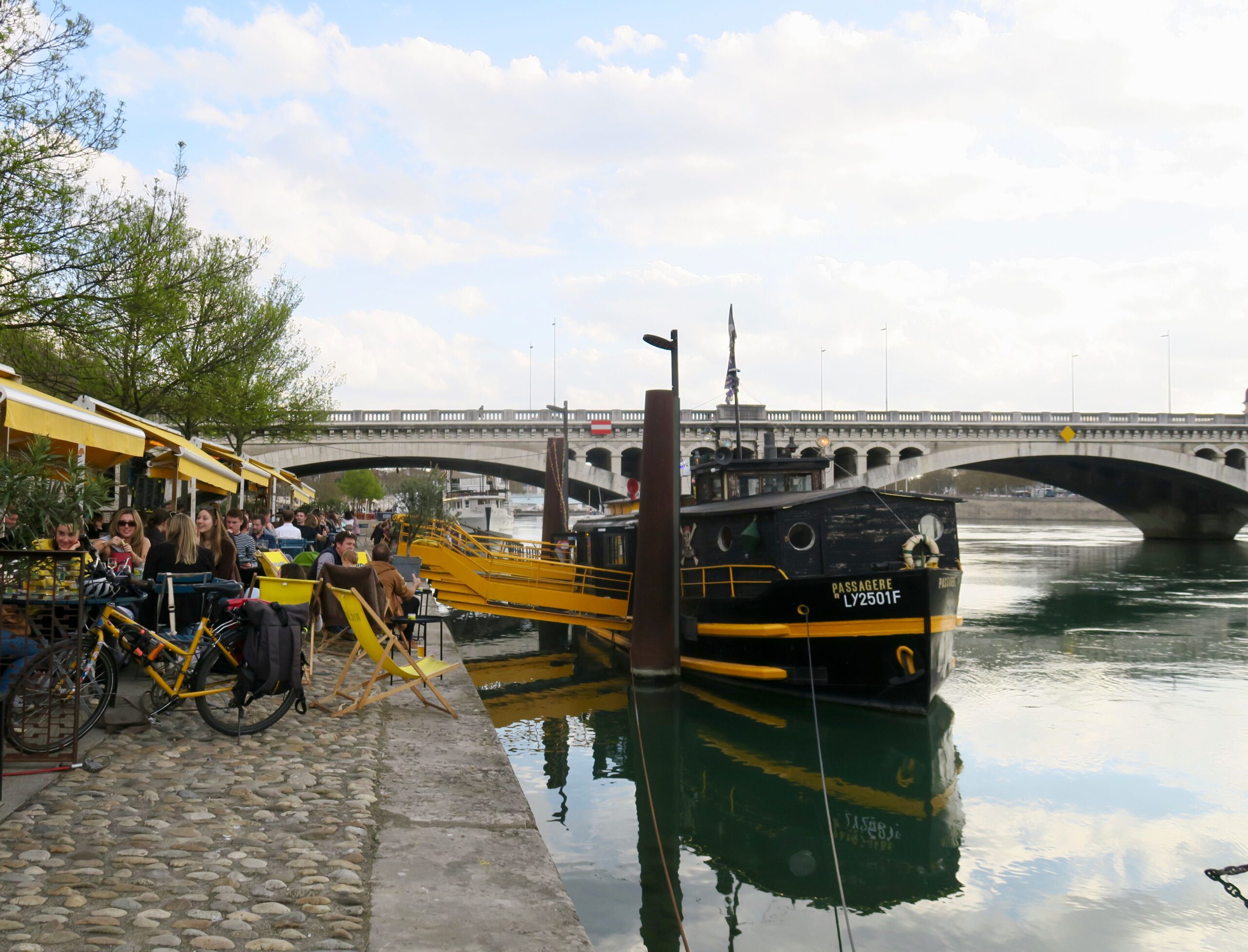 Schwof on the water: Zwischen Pont Wilson und Pont Lafayette erstreckt sich eine weitläufige Wiese. »Péniches« heißen die umfunktionierten Lastkähne wie Sirius, Plouf, La Marquise, Ayers Rock und La Passagère, die hier als Dancefloor, Partyschiffe mit DJ-Sets oder Konzertbühne, Musikclub, Pub oder Café am Quai festgemacht haben. Ganz schön angesagt sind die alten Kähne an den Rhône-Quais, meist geöffnet vom Nachmittag bis in die späte Nacht – besonders beliebt beim Partyvolk ist das Hopping von Boot zu Boot. Weil die Kapazitäten der ausgedienten Kähne begrenzt sind und es am Wochenende recht voll wird, bleibt ein Teil der Gäste am Ufer und feiert auf den Holzterrassen der Abendlocations oder gleich im Uferpark.