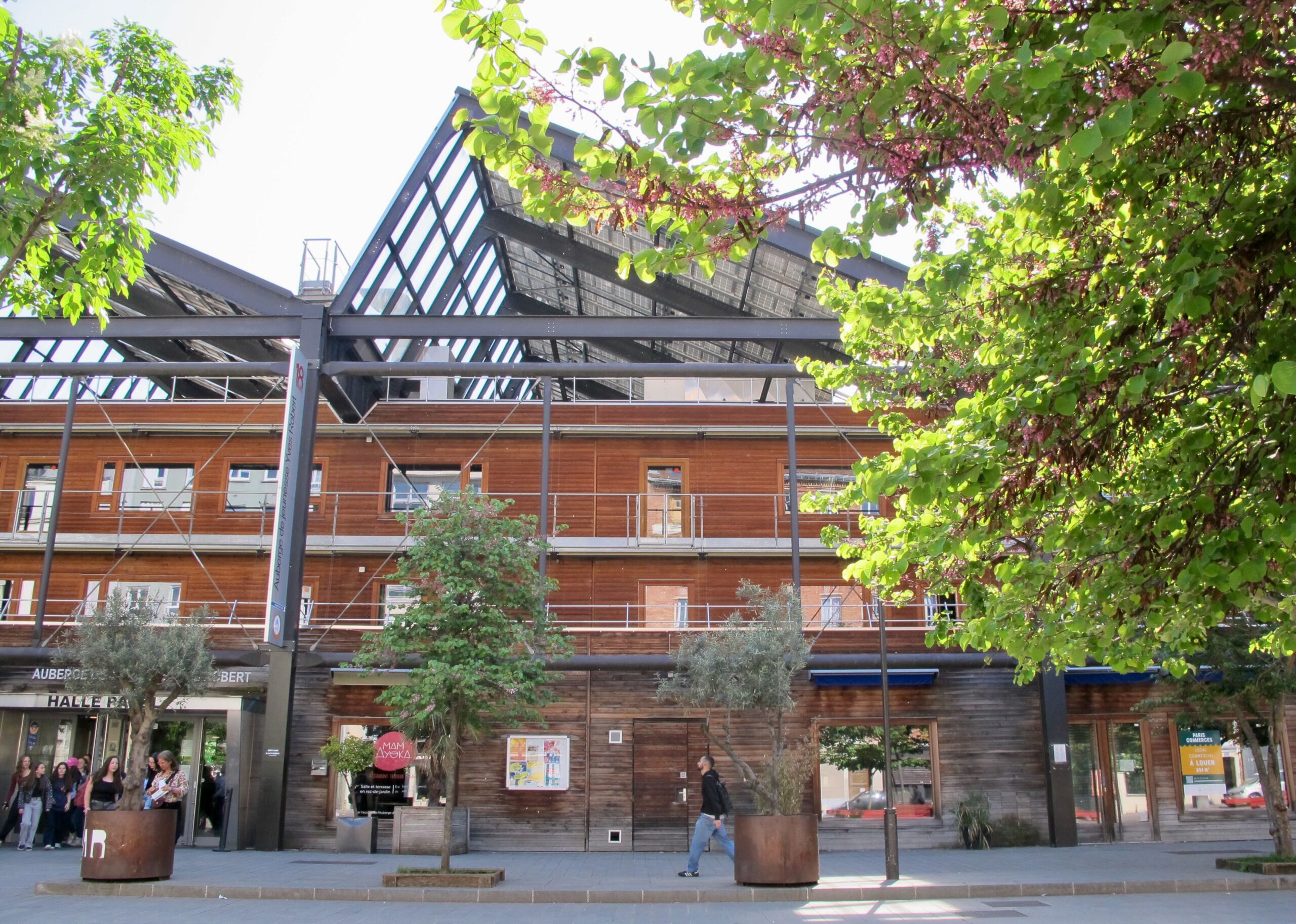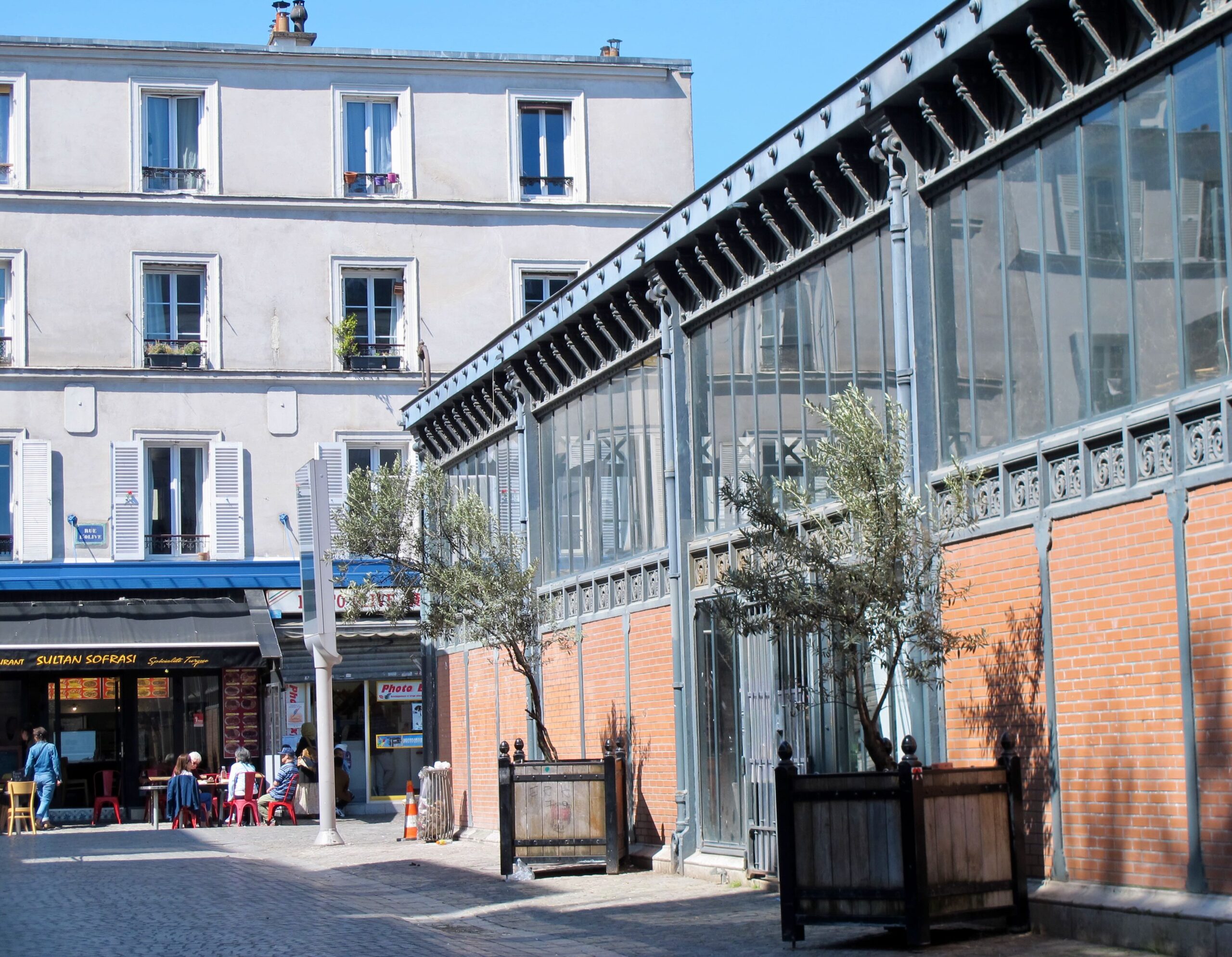 Marché de l’Olive: An der Kreuzung vor dem Eingang zum Garten kann man im Nord Nord für eine Eckkneipe erstaunlich gut essen, Artischocken-Carpaccio und Couscoussalat waren genau das Richtige bei schon sommerlichen Temperaturen Anfang Mai. Ein Abstecher um die Ecke führt noch zur denkmalgeschützten alten Markthalle, rund um die es dann doch noch fast dörflich wird, bevor man – der Rue Riquet in entgegengesetzter Richtung folgend – die Bahngleise erneut überquert.