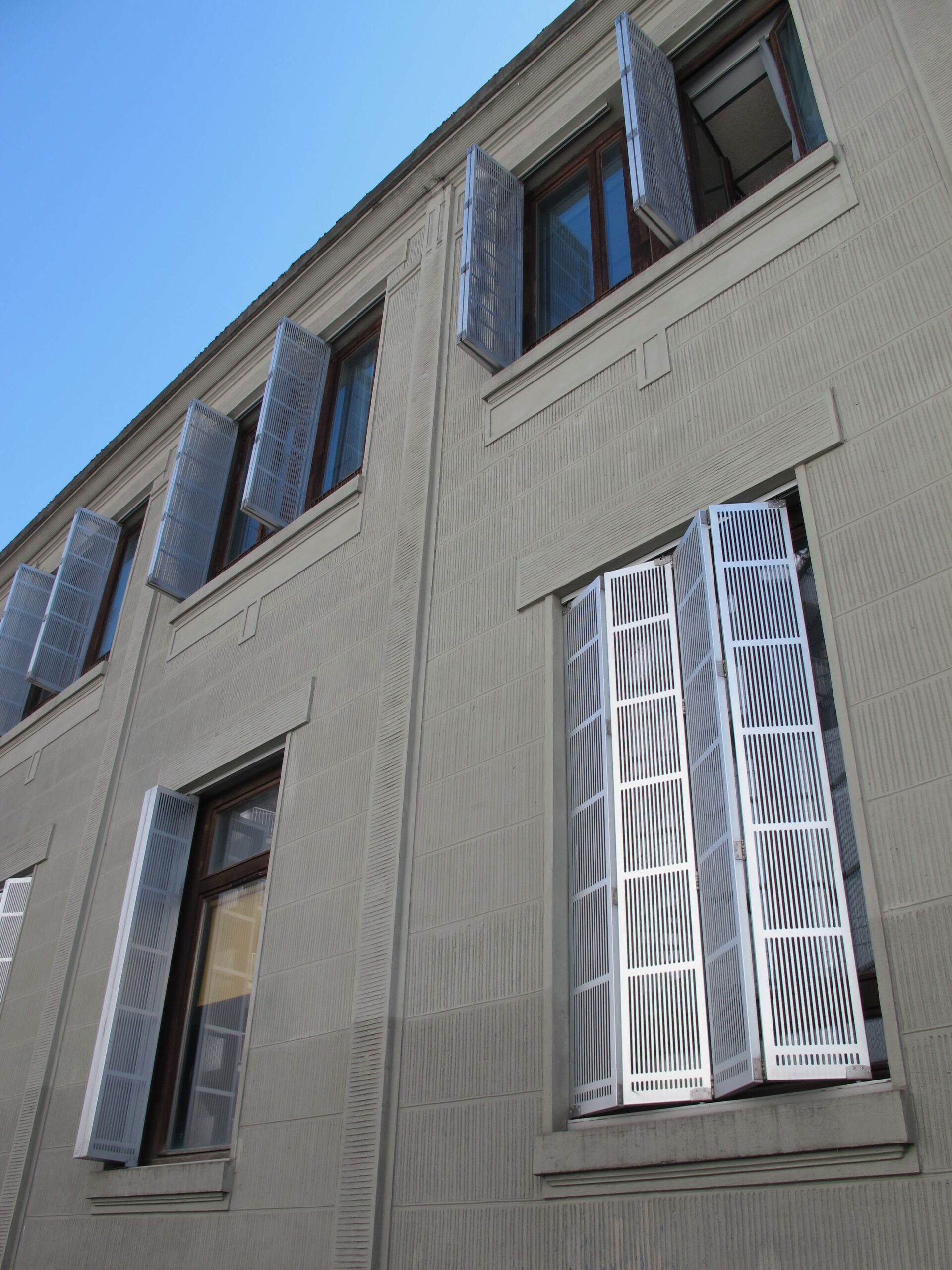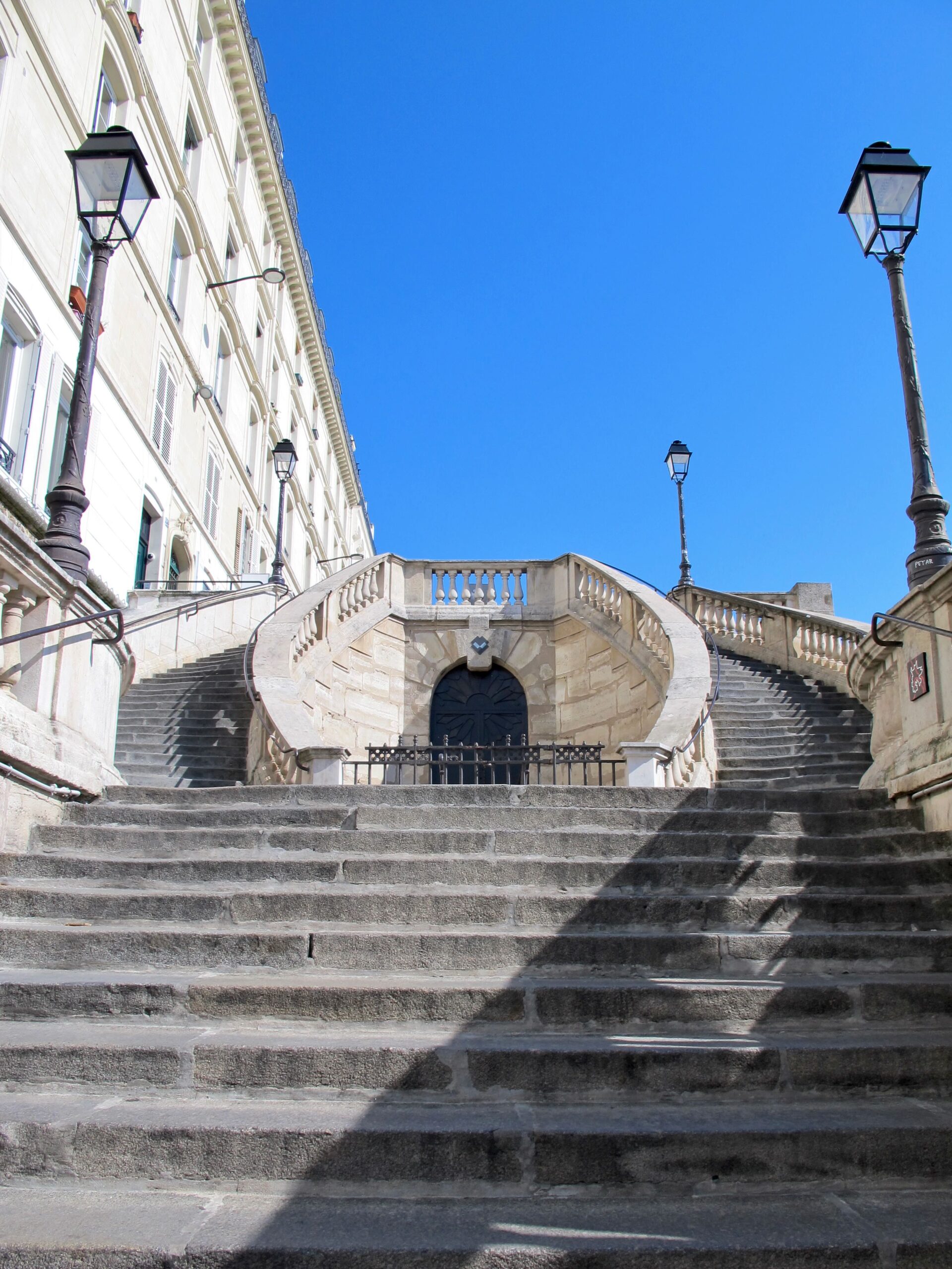 La Caserne: Gleich hinter der Stahlbrücke steht noch »Sapeurs Pompiers« über dem Eingang eines dreieckigen Gebäudes, der Caserne Château-Landon. Der begrünte Innenhof ist öffentlich zugänglich, denn in der renovierten Feuerwehrkaserne kam ein städtischer »incubateur mode responsable« unter, also eine Residenz für Designerinnen und Start-ups, die sich mit nachhaltiger Mode befassen (www.lacaserneparis.com). Auf der umlaufenden Galerie saßen junge Menschen vor ihren Laptops, das vegetarische Restaurant eröffnet jetzt im Mai wieder. Dahinter biegt man nach links in die Rue Louis Blanc: 500 Straßen will Paris begrünen, und nach der Bürgerbefragung wird das Projekt zügig umgesetzt, wie vor der Schule gut zu sehen ist.