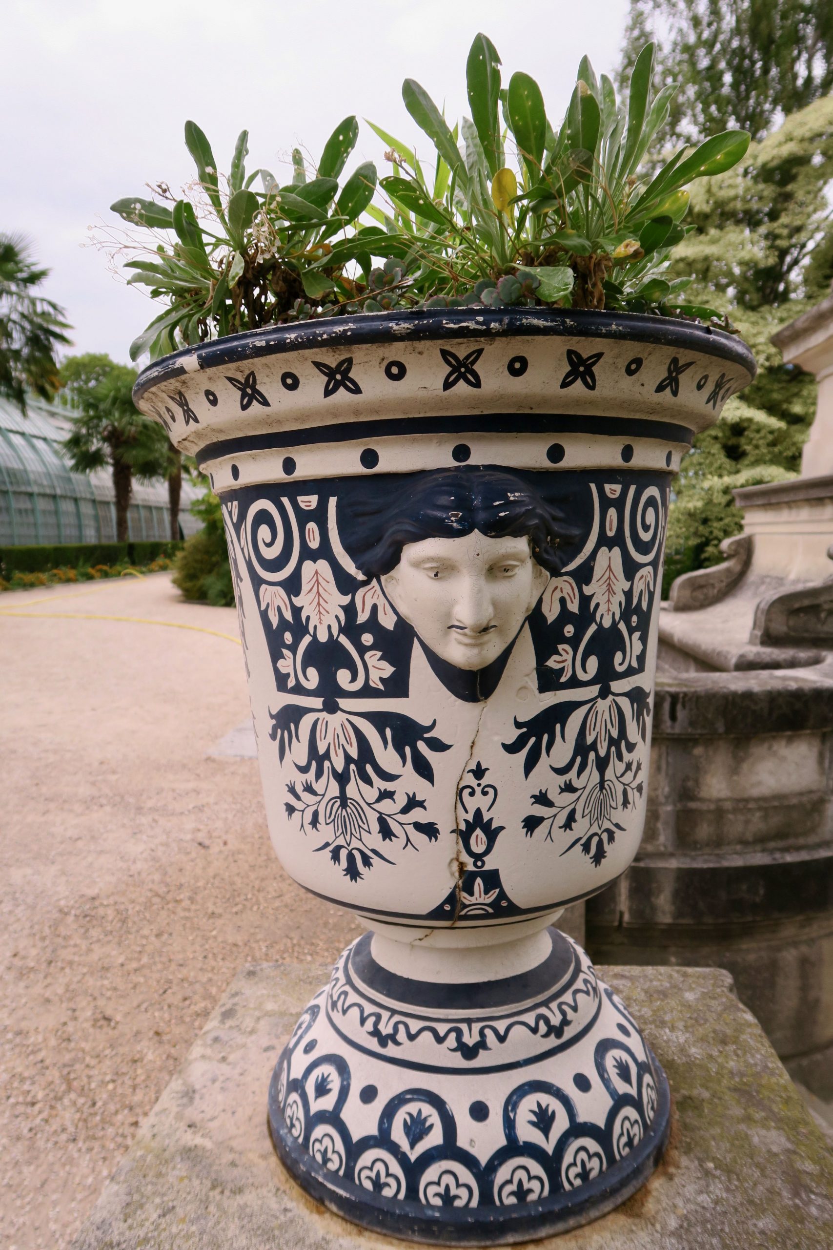 Mascarons und Square des Poètes: Vor dem großen Palmarium (»Grande Serre«) erstreckt sich ein »Parterre à la française«, ein geometrischer französischer Garten. Zweite Überraschung: Am anderen Ende sind neben der Freitreppe 14 Mascarons aus Gusseisen zu entdecken, die der Bildhauer Auguste Rodin Ende des 19. Jahrhunderts schuf, entstanden nach eigentlich für die Brunnenanlage am Trocadero gedachten Modellen. Solche Mascarons findet man in großer Vielfalt an den klassizistischen Häuserfassaden in Bordeaux, allerdings aus Stein. Dritte Überraschung: An den Park grenzt ein kleiner »Dichtergarten« mit vielen auf Steinen verewigten Zitaten von berühmten Schriftsteller:innen. Dazu mehr in meinem Blogartikel über einen langen Spaziergang durch Passy und Auteuil (in Corona-Zeiten habe ich alle touristischen Gegenden weiträumig umkreist, habe neben Passy und Auteuil auch Batignolles, Belleville, Ménilmontant und Charonne einen Besuch abgestattet).
