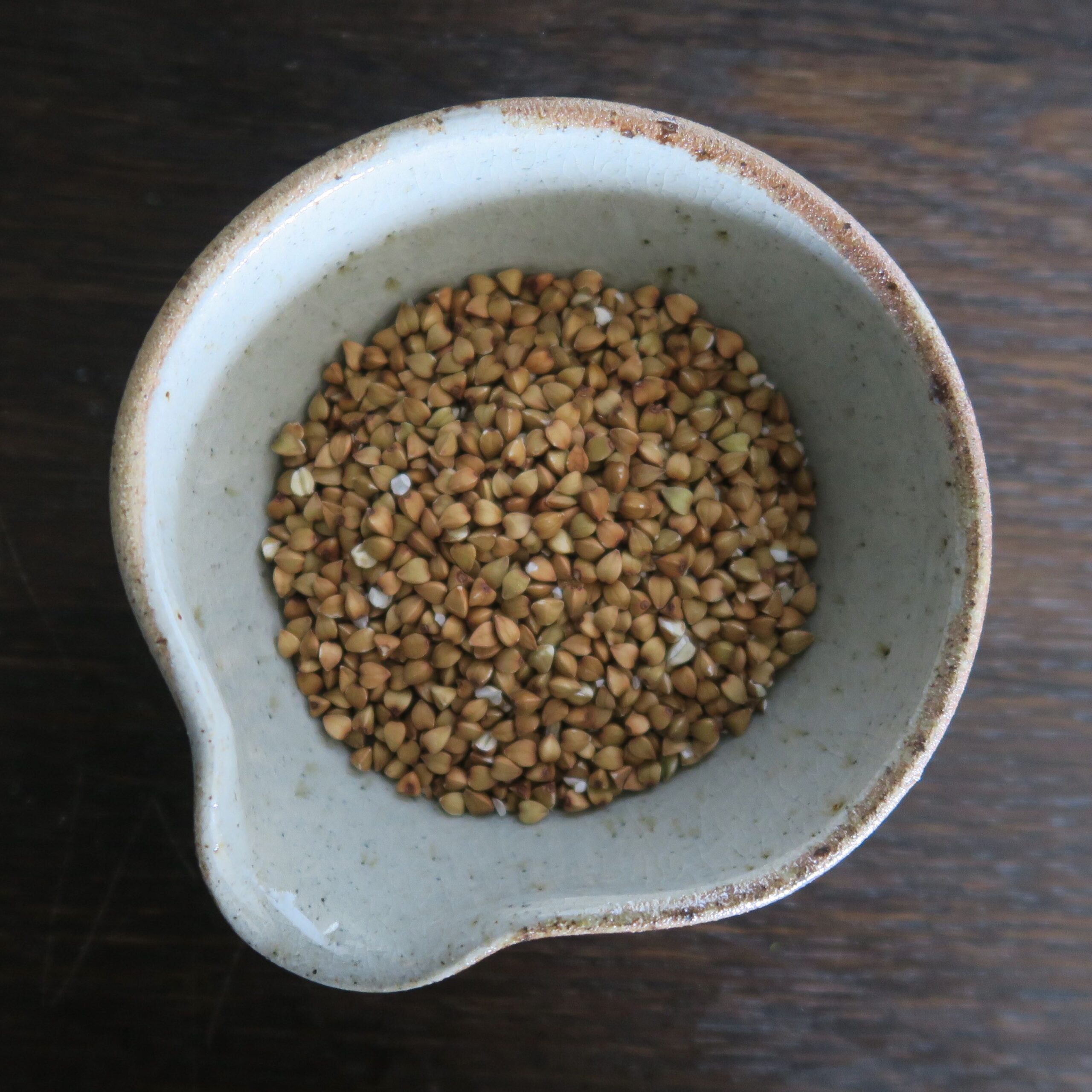 Und so geht’s: Den Buchweizen kurz im Sieb unter kaltem Wasser waschen. Buchweizen und Wasser im Verhältnis 1:2 aufkochen, dann salzen, den Topf zudecken und bei geringer Hitze 15 Minuten quellen lassen, dann in eine Salatschüssel geben.