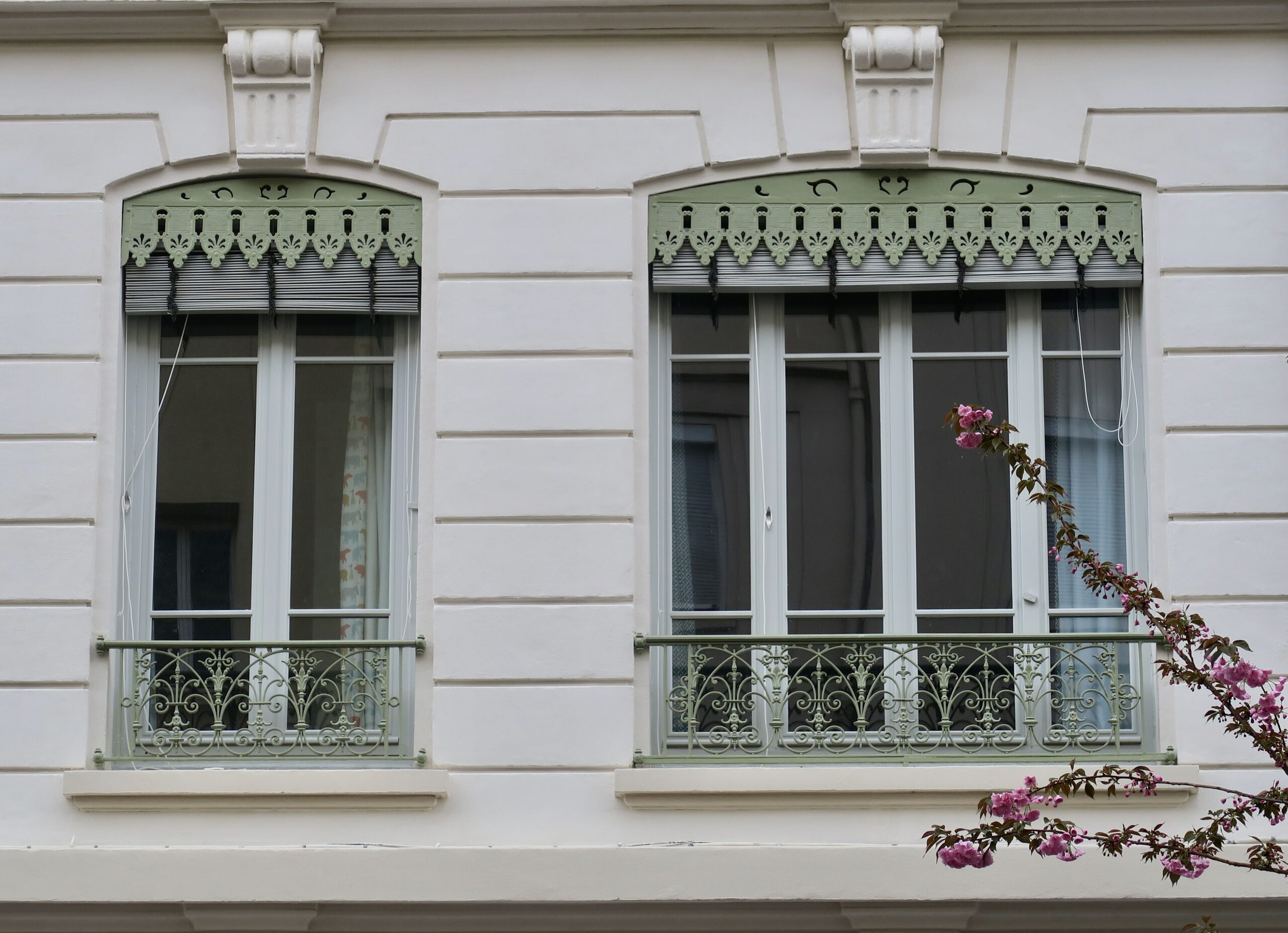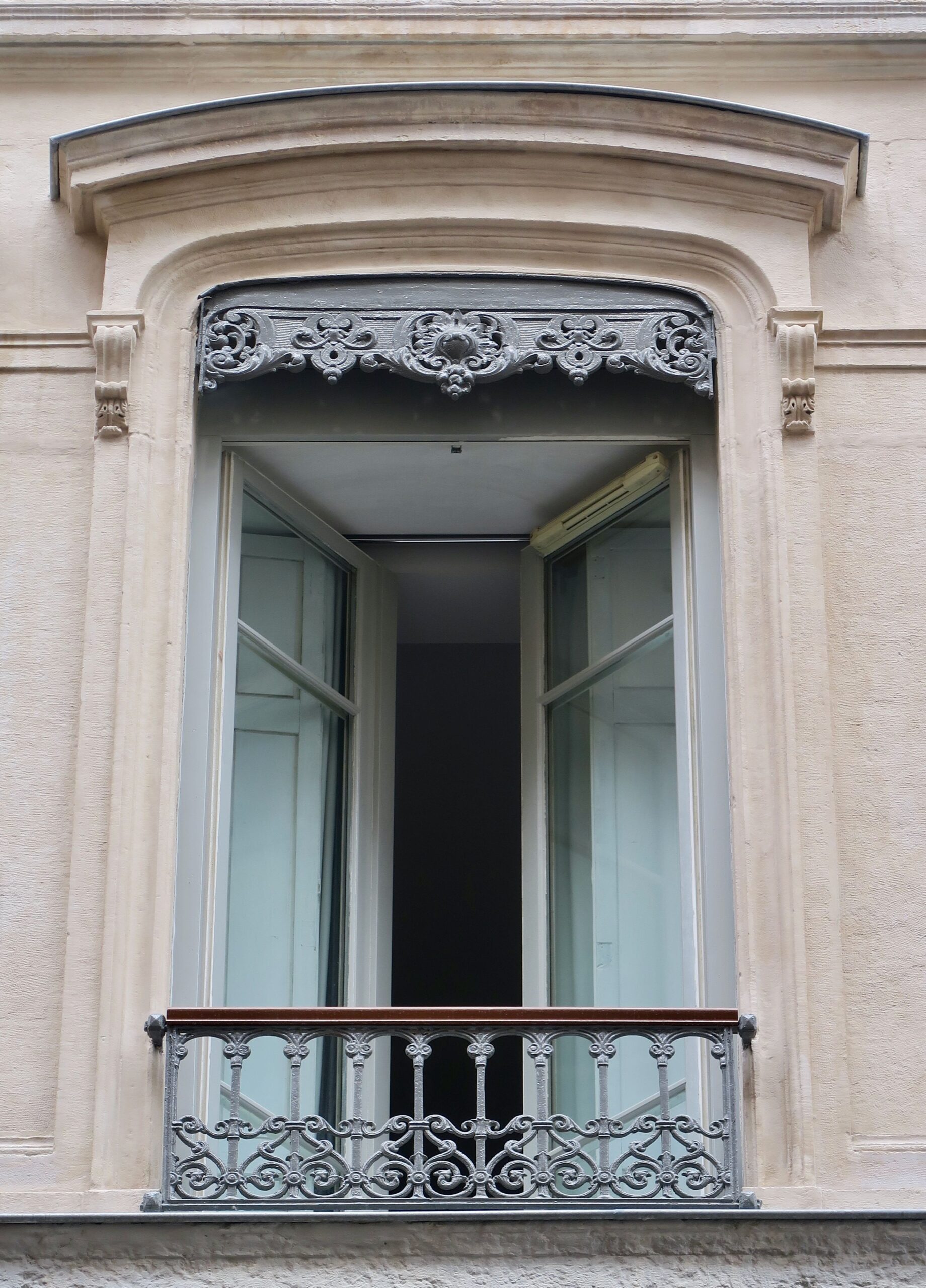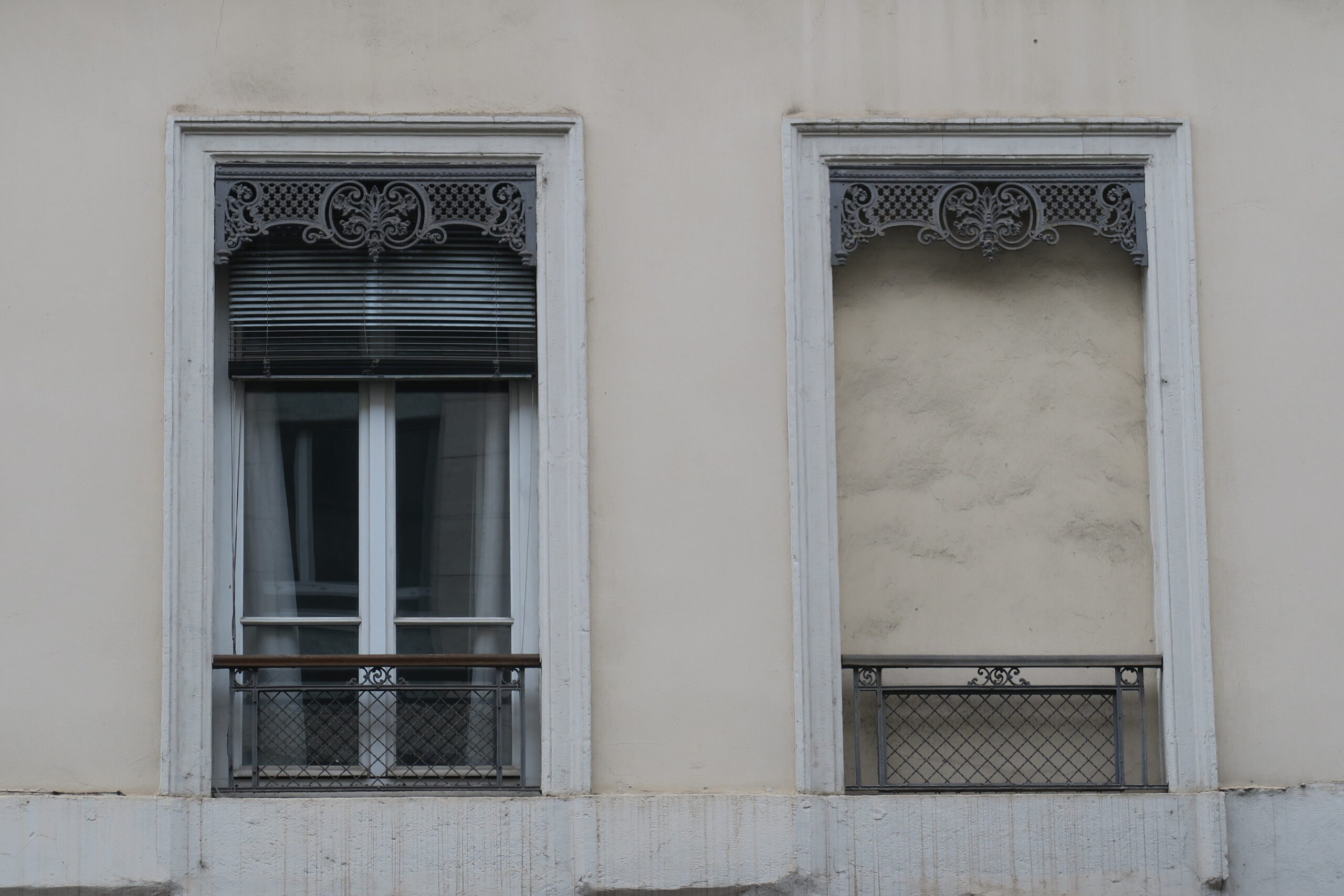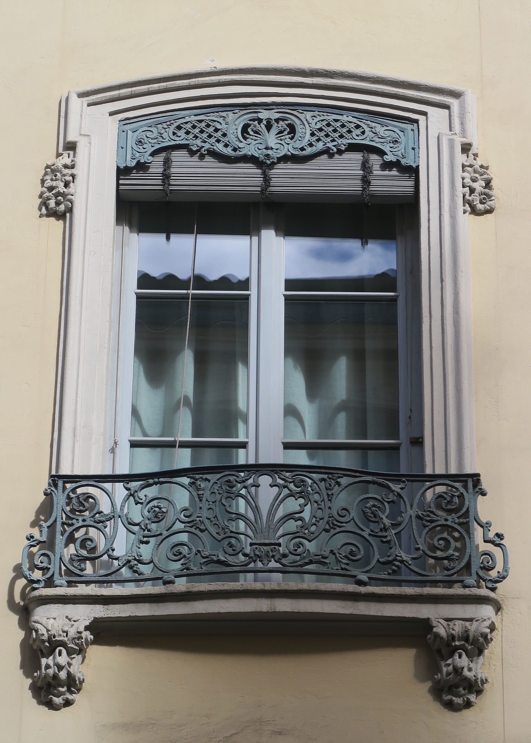 Sichtschutz und Verdunkelung: Der harmonische Eindruck der Lyoner Fassaden ist nicht zuletzt der einheitlichen Farbgebung zu verdanken, mit der gusseiserne Fensterbrüstungen und Lambrequins gestaltet werden. Auf den zweiten Blick stellt man fest, dass sie, ebenso wie die »garde-corps« (Absturzsicherungen) der Fenster nicht rein dekorativ sind, sondern eine Funktion als Jalousienverkleidung haben. Sie verbergen meist außen angebrachte Lamellenjalousen, die es erlauben, an heißen Sommertagen die Wohnung etwas zu verschatten, ohne die Sonnenstrahlen gleich ganz auszuschließen. Auch diese Holzjalousien, die sich dem ausgeprägten italienischen Einfluss seit der Renaissance verdanken, prägen das Stadtbild.