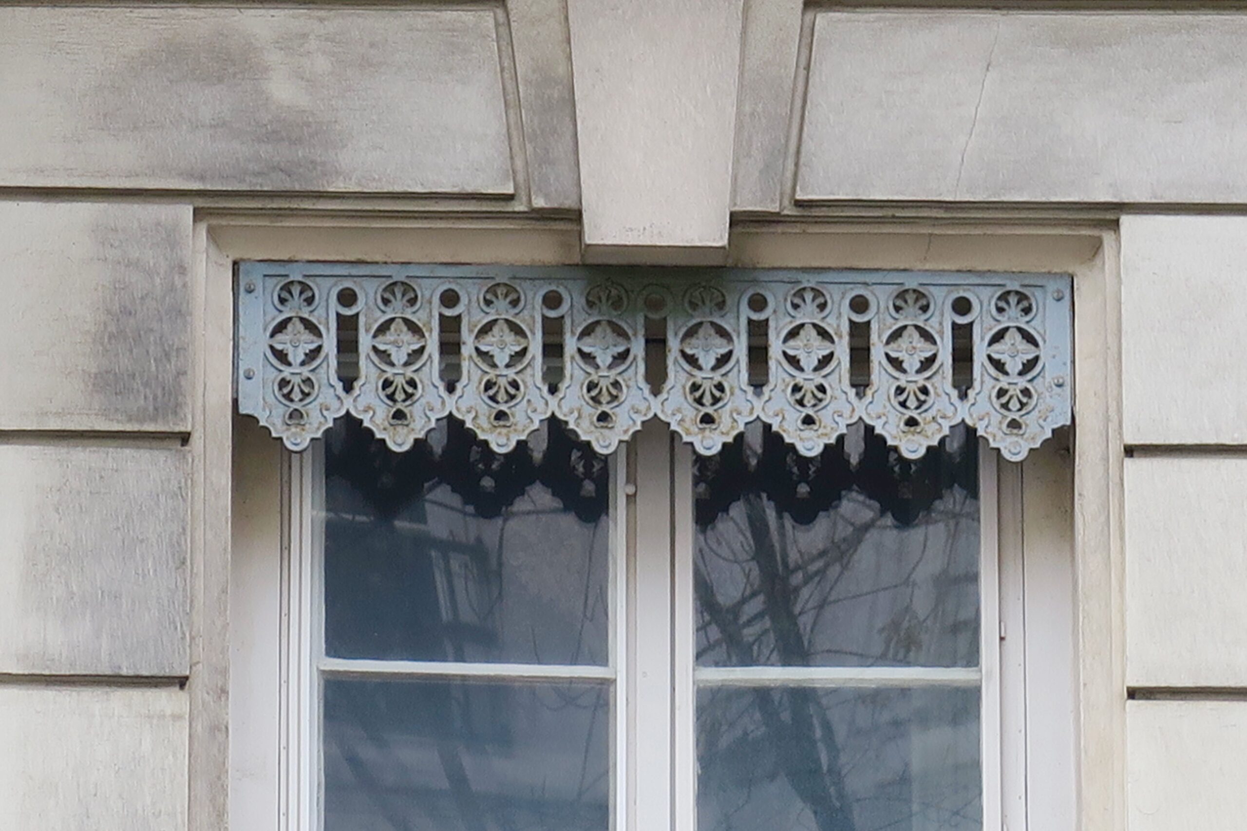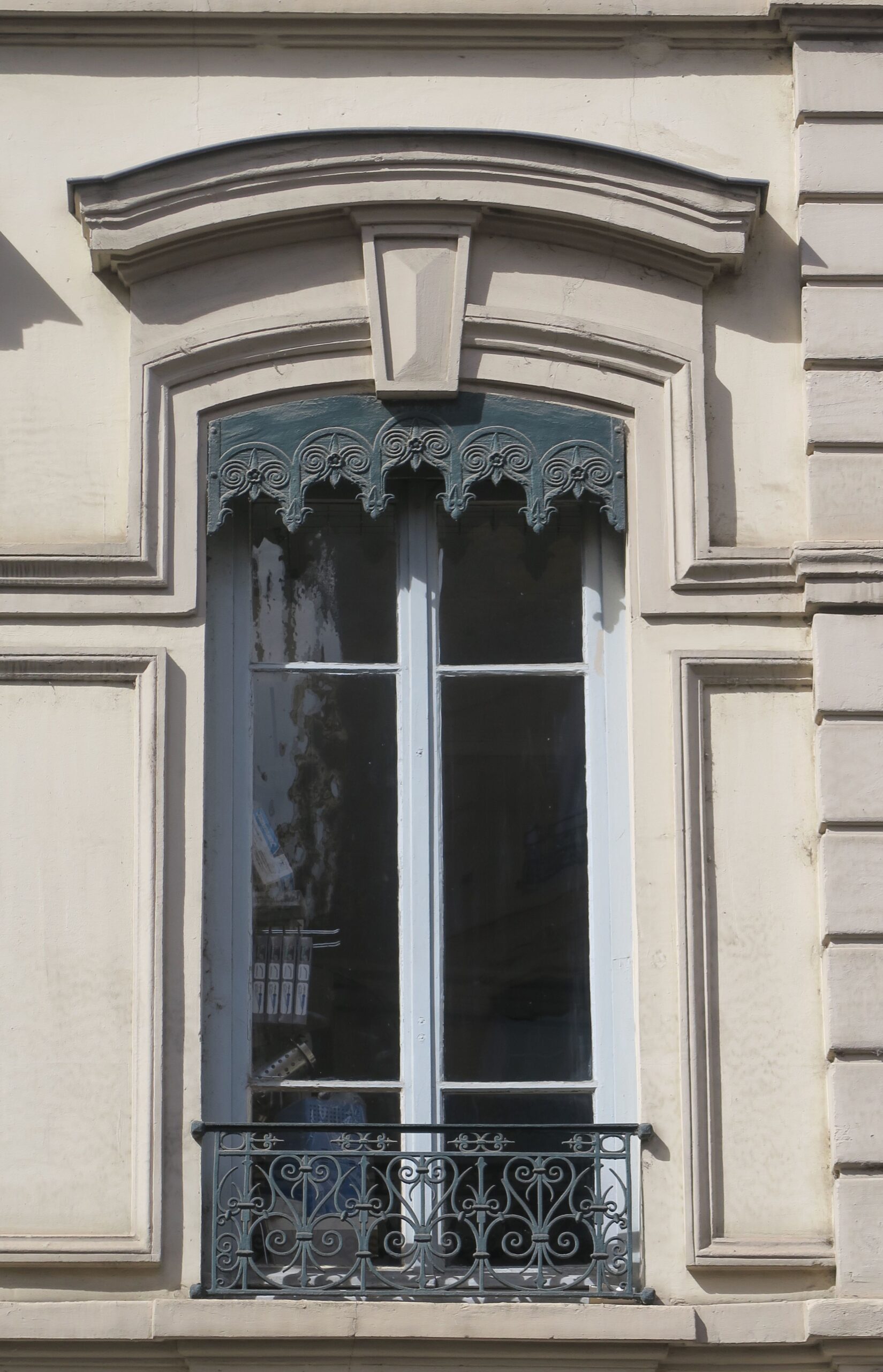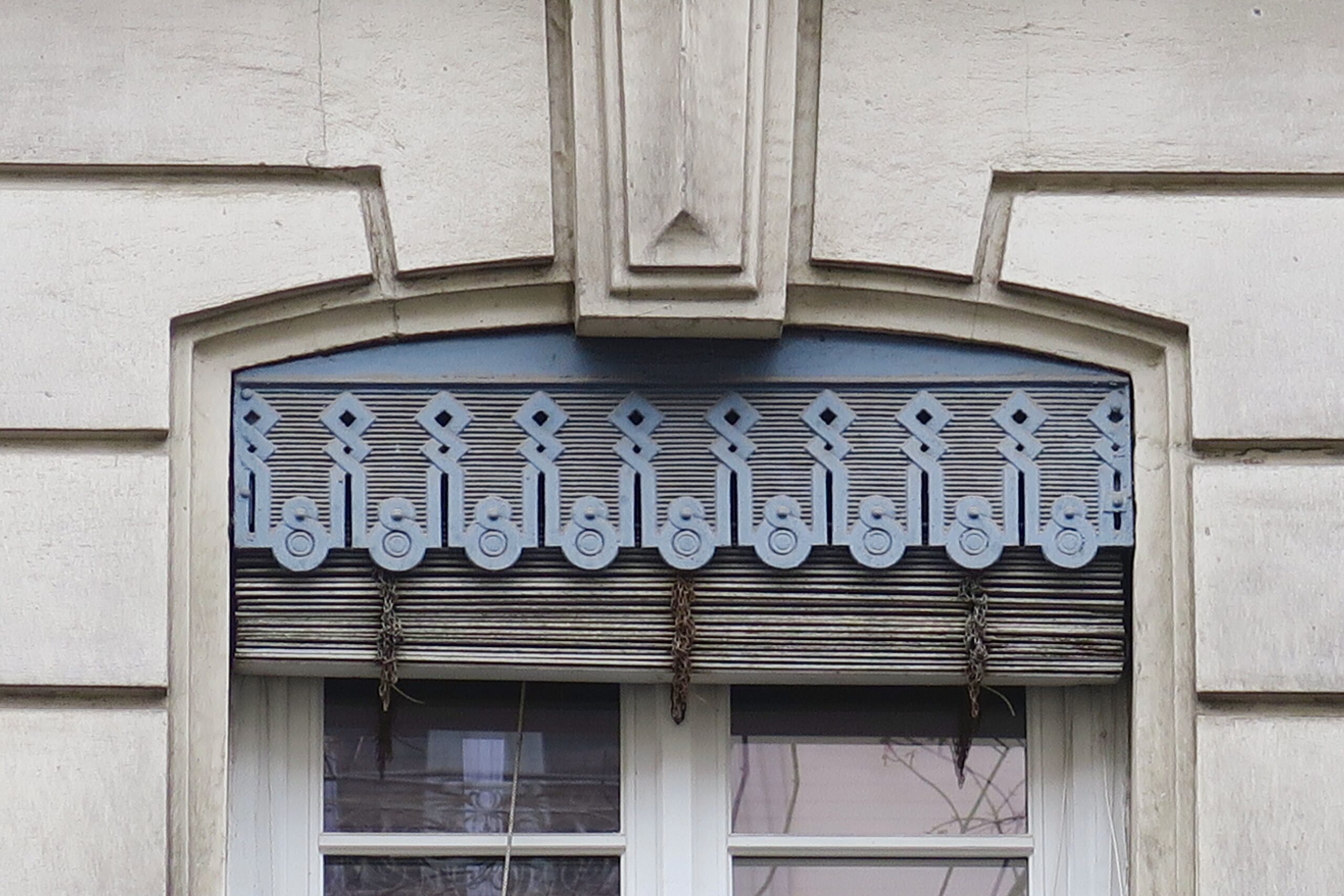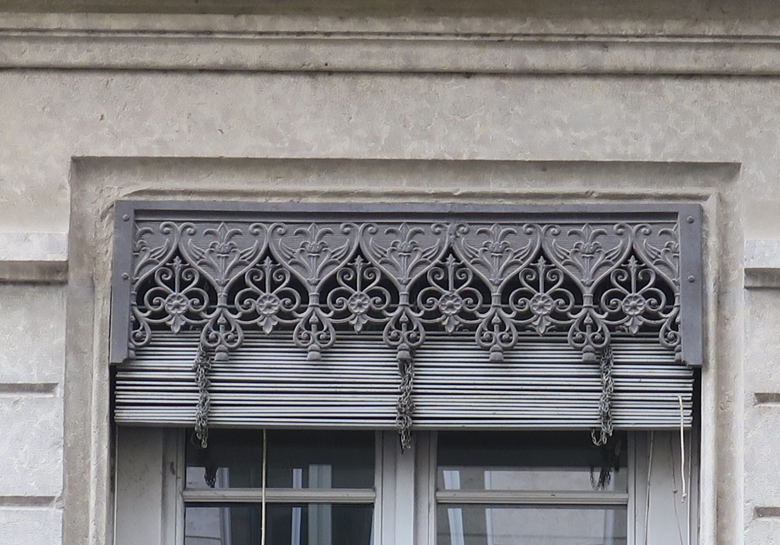 Ein Blick nach oben: Als Fan von Guss- und Schmiedeeisen schenke ich dieser Handwerkskunst in den Städten Frankreichs gern ein besonderes Augenmerk, etwa den schönen Haustüren in Paris oder den Balkongittern und Türklopfern in Bordeaux. Aber obwohl ich auf historische Architekturdetails achte, sind mir die aufwändig verzierten Jalousienverkleidungen oben an den Fenstern in Lyon nicht gleich beim ersten Besuch aufgefallen, sondern erst jetzt, unterwegs für die nächste Auflage meines Lyon-Reiseführers. Was auf Deutsch Schabracke heißt (und leider im übertragenen Gebrauch negativ konnotiert ist), wird im Französischen als Lambrequin bezeichnet. Wenn man erstmal anfängt auf sie zu achten, entdeckt man die Zierblenden auf der Halbinsel zwischen Rhône und Saône und in den anderen Stadtvierteln mit Gründerzeitbauten in großer Vielfalt.
