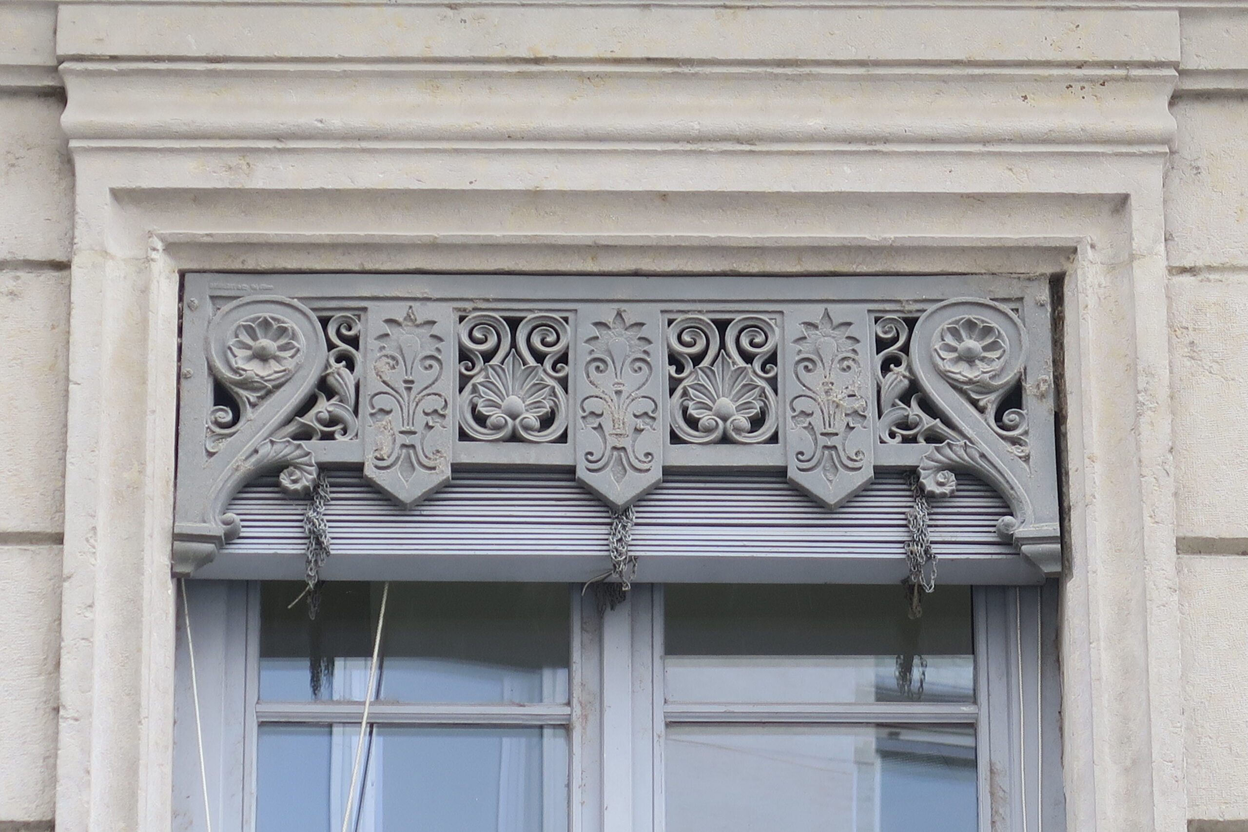 Denkmalschutz und Baukultur: Wunderschön – und enorm aufwändig und teuer, da fragt man sich, ob die Restaurierung Pflicht ist, schließlich zählt Lyon zum Unesco-Weltkulturerbe, ob es noch genug erfahrene Handwerker dafür gibt, was für neue Gebäude gilt und wer das alles bezahlt… Die Website Lyonembellissement gibt dazu erste Auskunft. Dort erfährt man, dass die Lambrequins aus Holz sein können, was sie oft bei den einfacheren Gebäuden vom Beginn des 19. Jahrhunderts und im Seidenweber-Viertel Croix-Rousse sind. Oft haben Holz-Zierblenden nur einen zackenförmigen oder geschweiften Abschluss, teils aber ebenfalls Lochmuster. Als erschwingliches Material blieb Holz lange populär, es verwittert aber leider bei mangelnder Pflege und wird unansehnlich. Lambrequins aus Gusseisen finden sich vor allem an den Bauten der Bourgeoisie des 19. Jahrhunderts, vor allem im 3. und 6. Arrondissement. Neben Einzelanfertigungen für sehr wohlhabende Bauherren konnte man Modelle – je nach Fensterlaibung geschwungen oder rechteckig – aus Musterkatalogen aussuchen, bei metallverarbeitenden Unternehmen oder Fachhändlern wie Descours et Cabaud oder Simon-Perret Frères. Einige hochspezialisierte Traditionsunternehmen sind noch in diesem Nischenmarkt der Fenster- und Fassadenrenovierung in Lyon tätig (L’Atelier Jalouse, Jalousie du Rhône und Jalousie Lyonnaise beispielsweise).