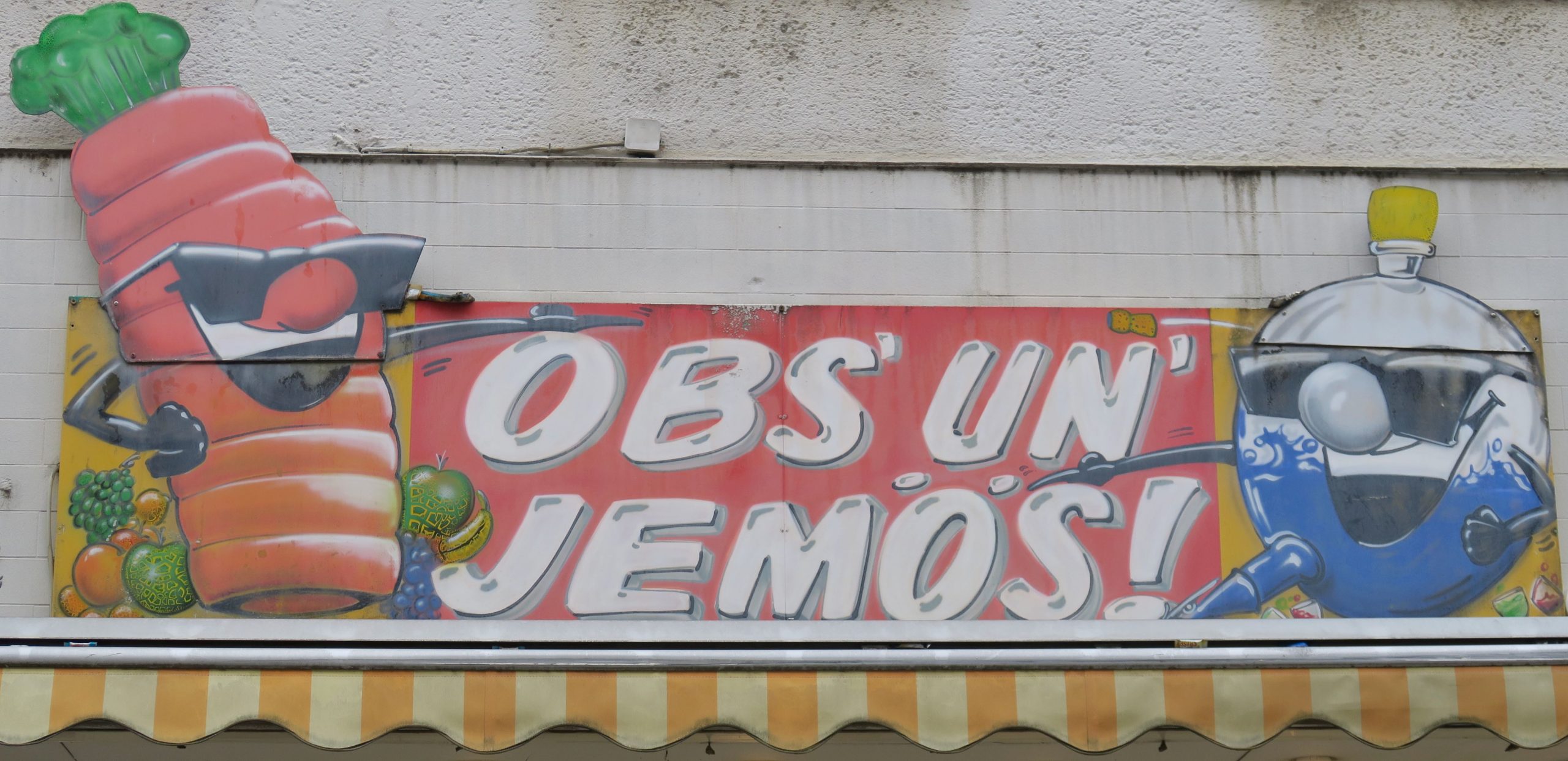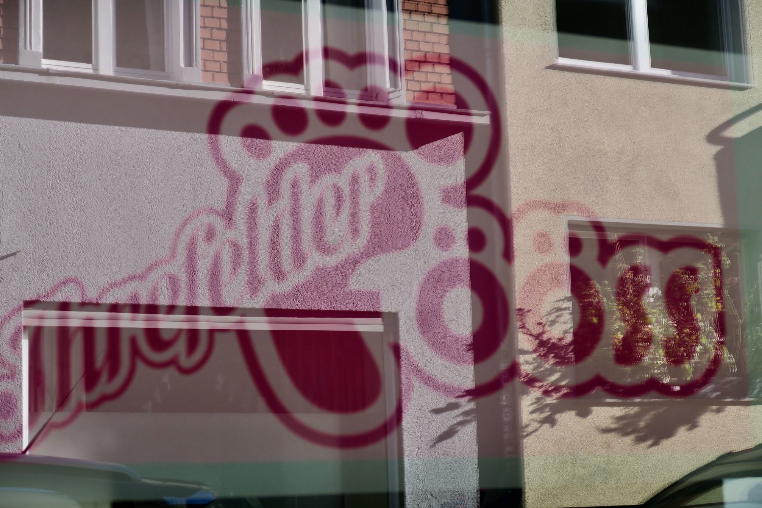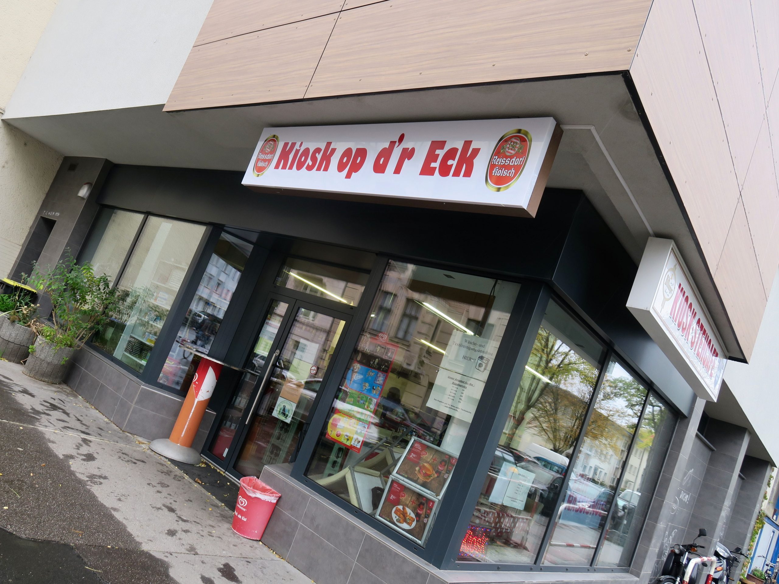 In meinem Veedel: Ich fände es schön, wenn die Schriftzüge im Regiolekt oder Dialekt mehr würden – in der modernen Variante. Vor allem, weil ich auf Wortwitz hoffe! Bislang ist Kölsch im Stadtbild am häufigsten auf Plakatwerbung zu entdecken; dort sind es dann oft Anspielungen auf das »Grundgesetz« oder Zitate von bekannten Liedzeilen, die einen großen Wiedererkennungseffekt haben (Charlotte Rein, Regiolekt in der Werbung). Trotz der vielen Aushänge in Corona-Zeiten zum Thema Abstand, Hygiene etc. hat sich #blievzuhuss hauptsächlich als Hashtag über Twitter verbreitet. Dabei klingen Dialektformulierungen oft drastischer und direkter als das Hochdeutsche ohne unfreundlich zu wirken (Maske = Schnüsslappen), etwa wenn der Imbiss sich »Fressbud« nennt und darum bittet, schnell zu bezahlen und dann »Fott mit euch« (Foto siehe Köln vertikal). Wirklich sentimental wird der Kölner in seinem Dorf, das hier Veedel heißt. »Et Schönste, wat m’r han, schon all die lange Johr, es unser Veedel« (Bläck Fööss). Wer zum Typowalk durch Ehrenfeld, Nippes, Severinsviertel oder Deutz aufbricht, findet daher auch moderne Beispiele der kölschen Beschriftung – so kümmert sich die Podologin um »Ihrefelder Fööss«, die Kita um »Stippeföttche« oder »Hüppedeercher«, der »Veedelskrämer« bietet Unverpacktes, »Obs’ un’ Jemös« gibt es unweit des Chlodwigplatzes und im »Kiosk op d’r Eck« alles, was so ein klassisches Kölner Büdchen vorhält.